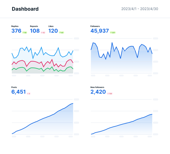 View changes in key numbers such as followers and accounts you follow, allowing you to gauge the status of your account at a glance.