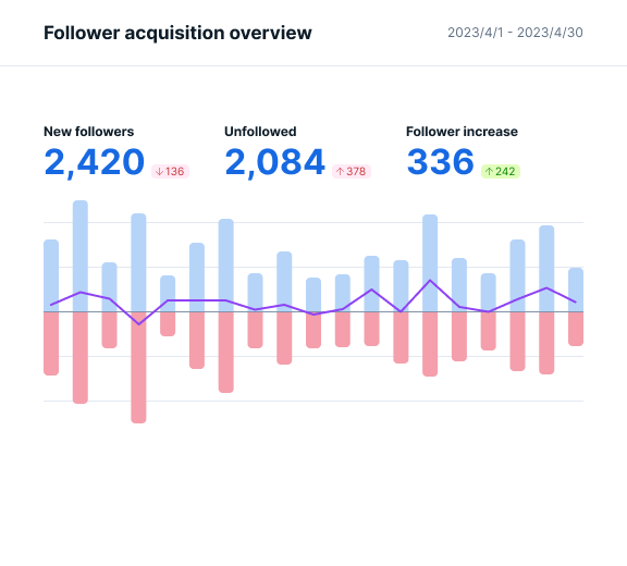 See how many followers you gained or lost at a glance.