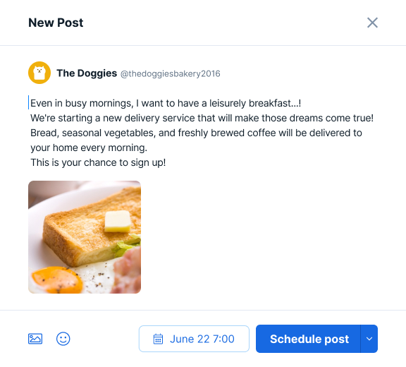 Create posts in advance and schedule them to be posted at a specified time. Posts can even be scheduled in bulk to save time.